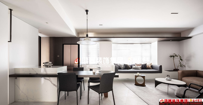 · 在起居室讓獨立的各處機能,看似獨立被分割,卻隱秘的又相互連接交融,從入戶收納機能逐漸蔓延至內(nèi)。